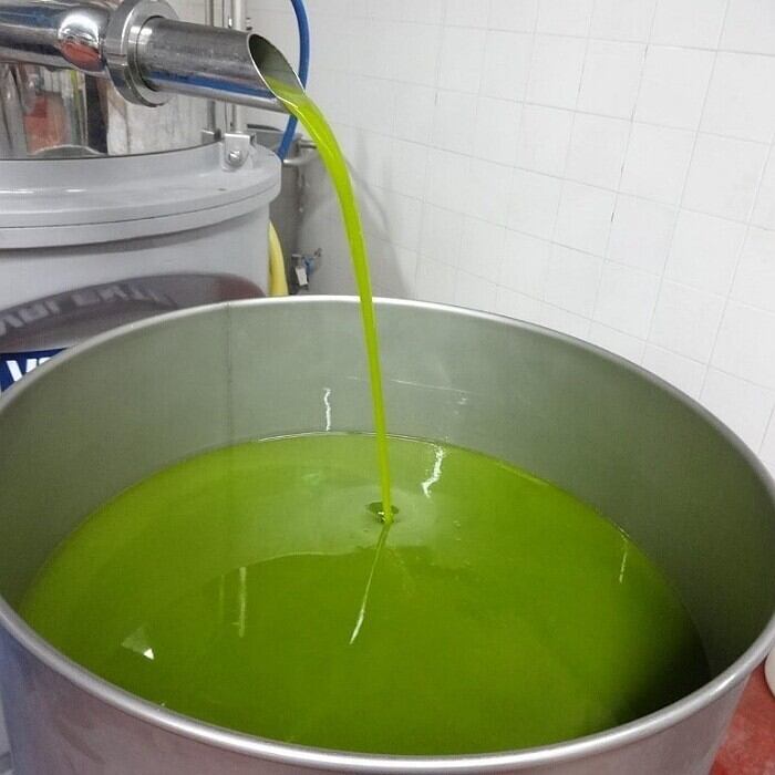 収穫当日に自社農園内の搾油所に持ち込み、収穫したオリーブを27℃以下に低温管理された遠心分離機で搾油されます。味わいに影響が出るので、オリーブの種は搾油前に取られ、ろ過することなく搾油後数日内にボトル詰めされます。
