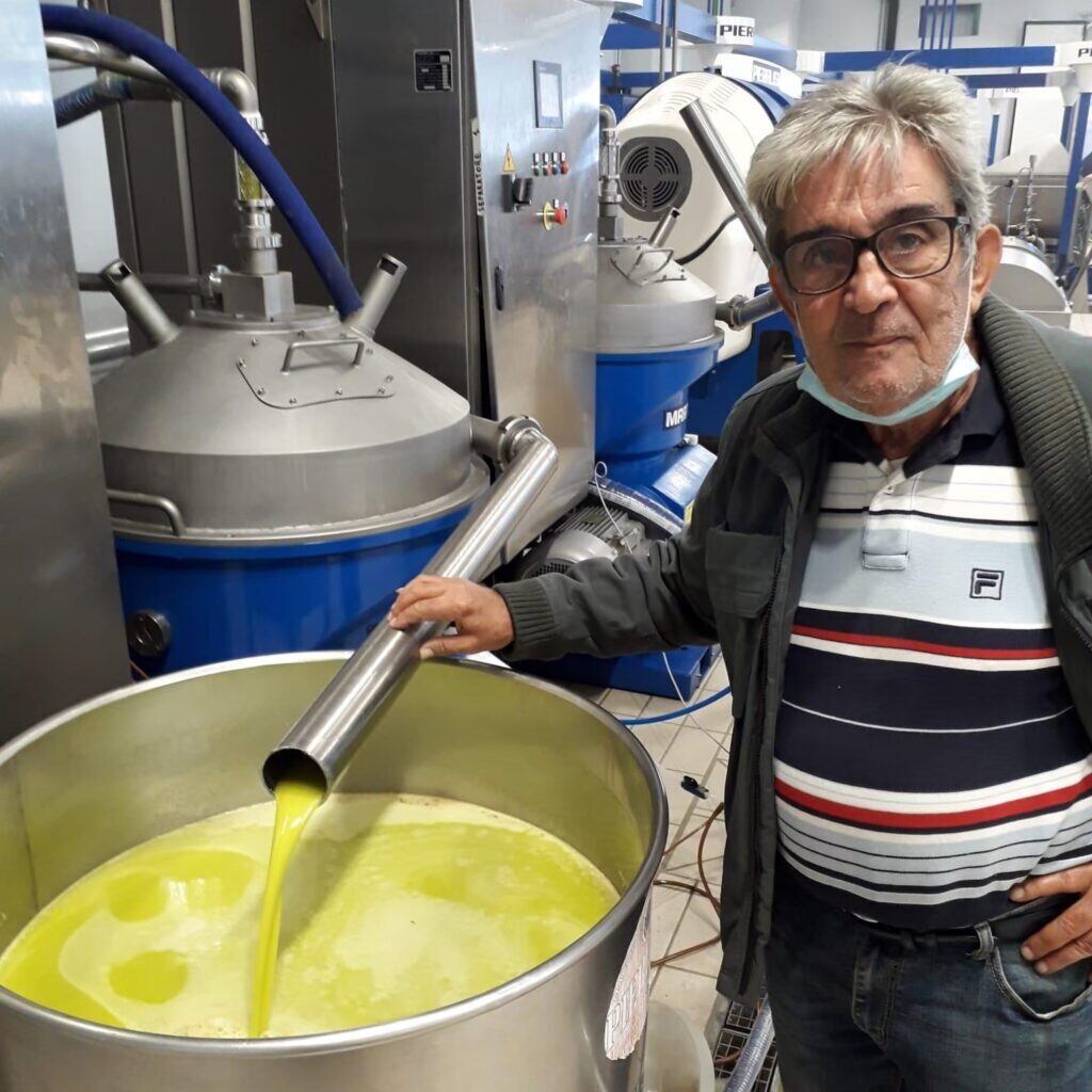ピニャターロ農園では、当日中に収穫したオリーブを27℃以下に低温管理された遠心分離機によって搾油しているとのこと。