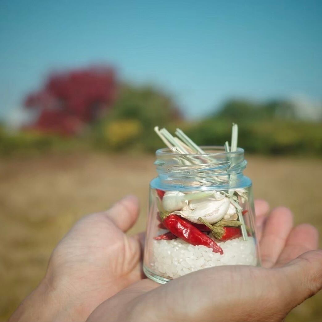 昨年からは自然栽培農法によりレモングラスを栽培し、「レモングラス香る食べるラー油」の販売もしています。使用している米麹、ニンニクなども自然栽培により自分たちで栽培したものを使用しています。お鍋や餃子、蒸し鶏などととても良く合い一気にアジアテイストになります。